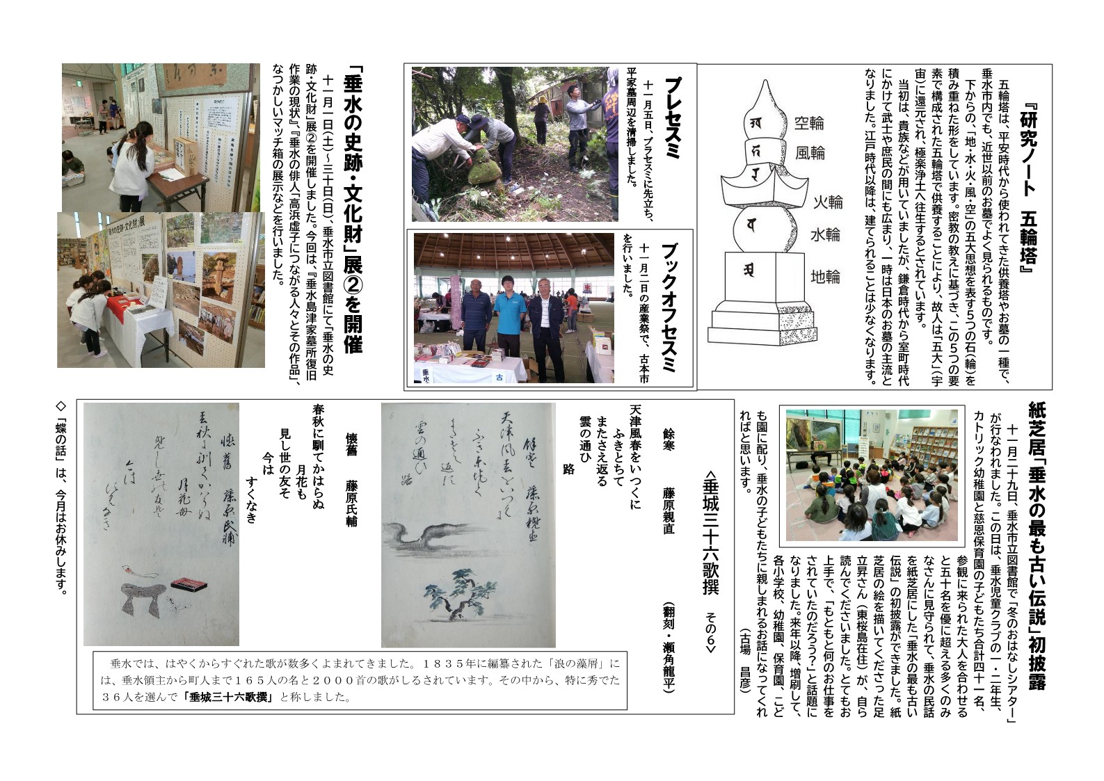 「研究ノート」で五輪塔の解説、「垂城三十六歌撰 その6」で2首の和歌の紹介があります。
