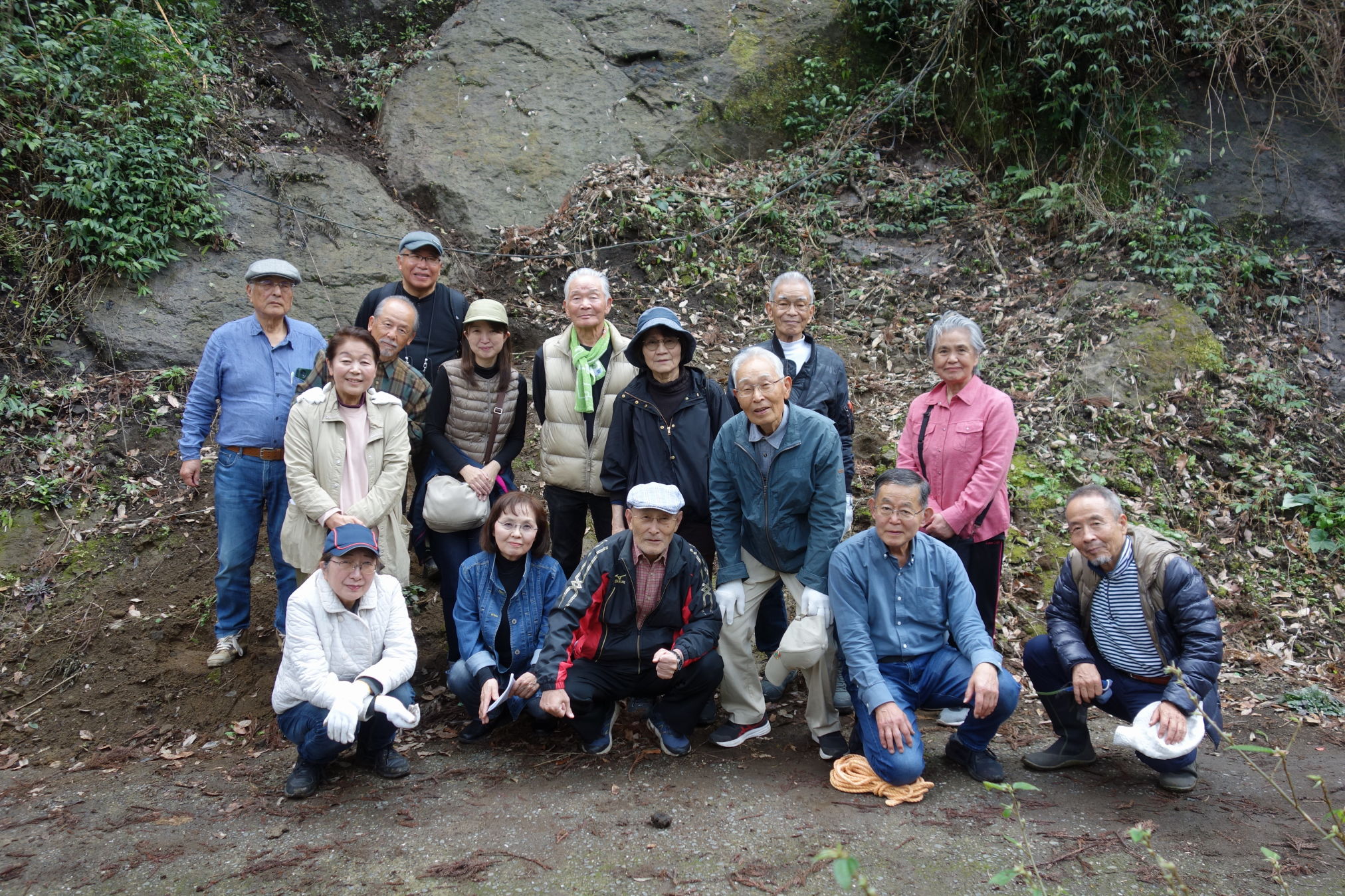 2月28日(土)に鹿屋の「ふる里探訪会」のメンバー16名で、吾平地区の史跡巡りをしました。今回初めて、少し危険でしたが、福師岳にある修験者の修行場跡(権現穴と不動明王)に行きました。